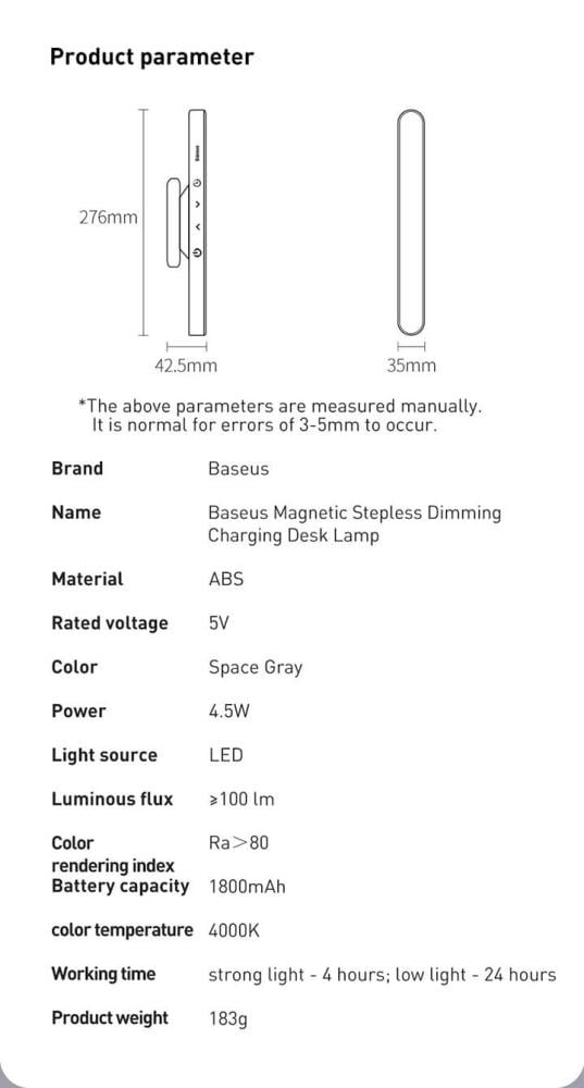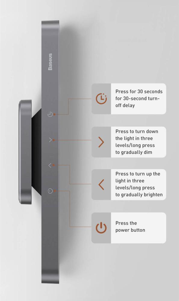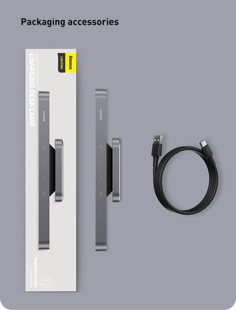 إضاءة نور مغناطيسي من Baseus متنقل قابل للشحن من غير ربط بالكهرباء متعدد الاستخدامات للمكتب الممر التصوير
