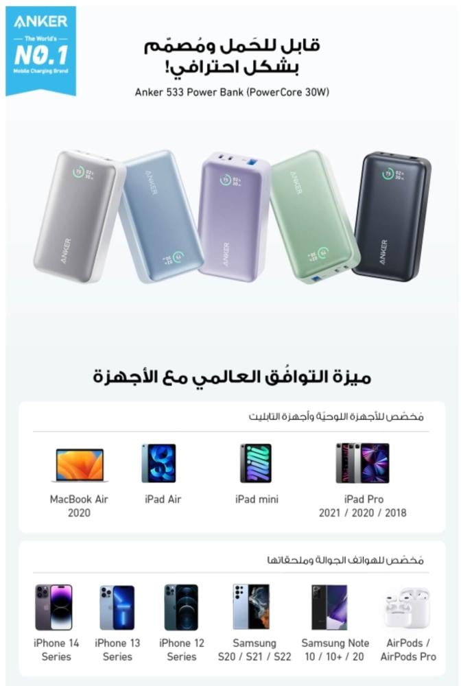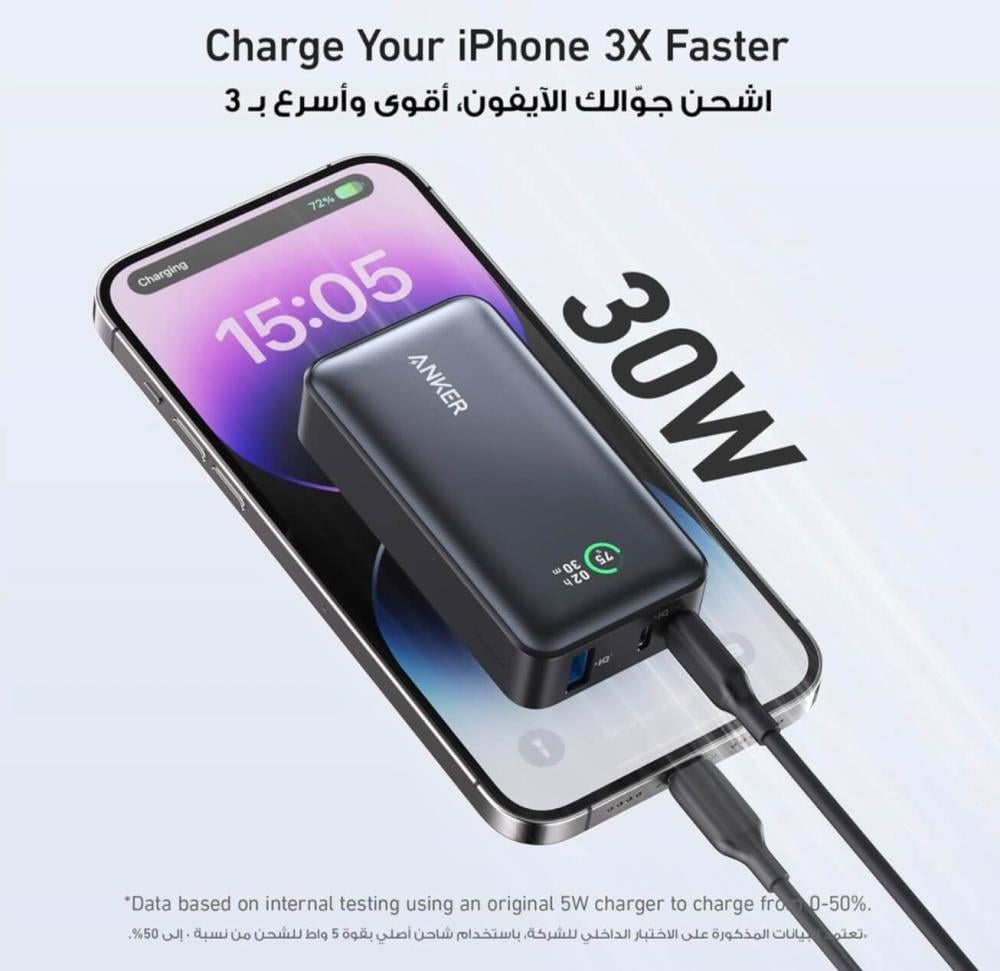 باور بانك 533 كور 30 واط من انكر 10000 مللي امبير بثلاثة منافذ شحن
