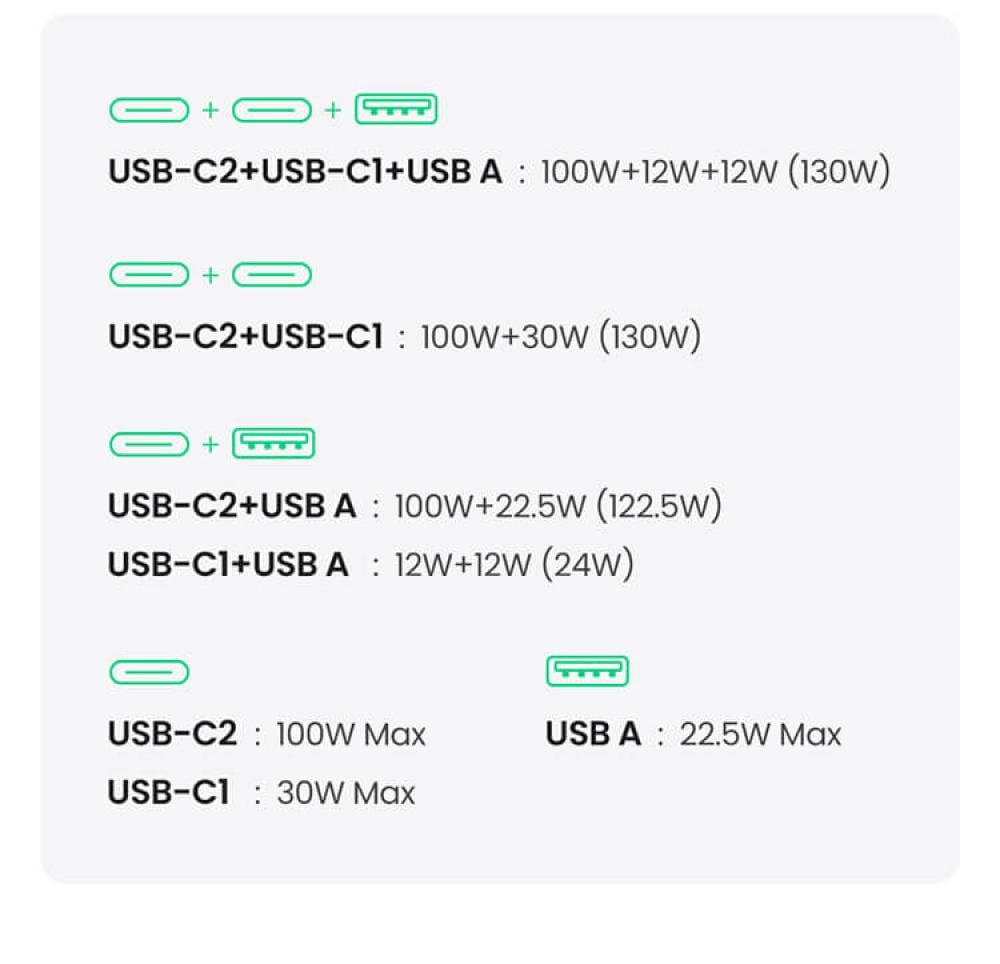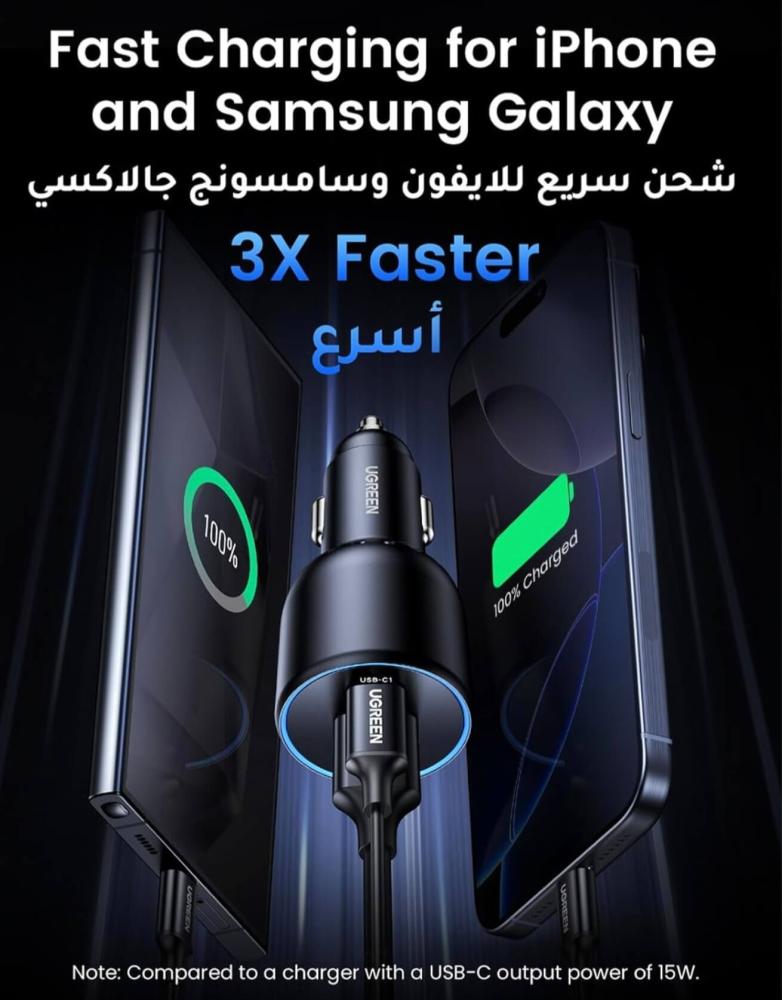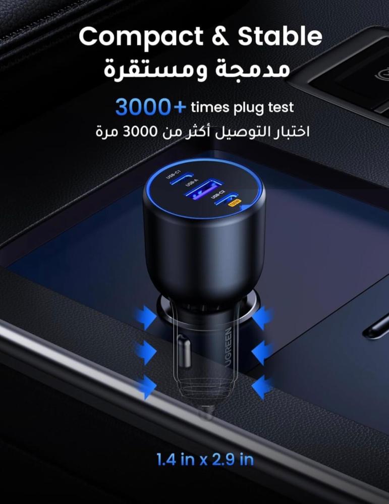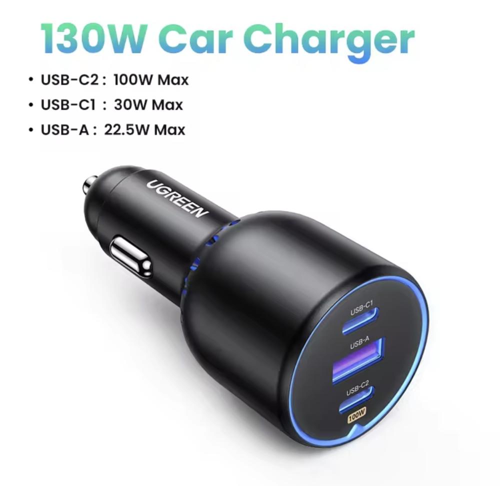 شاحن سيارة من UGREEN بثلاثة منافذ وقوة 130 واط