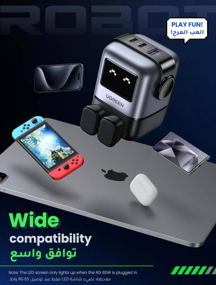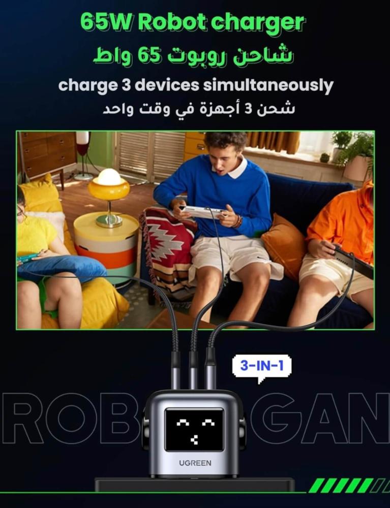 【أحدث شاحن Uno GaN】نقدم لك شاحن USB C المستقبلي والرائع "Uno GaN" بقدرة 65 وات، يجمع هذا الشاحن الصغير على شكل روبوت بين الوظائف والمرح، مما يجعله ملحقًا مثاليًا لجميع احتياجات الشحن الخاصة بك.