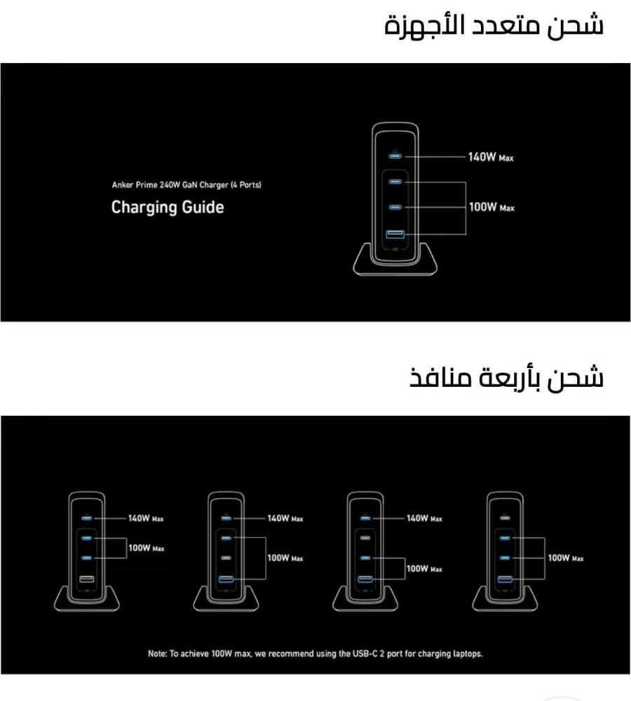 منصة شحن برايم GaN من انكر Anker سريعة جدا ب4 منافذ type-c وقدرة 240 واط