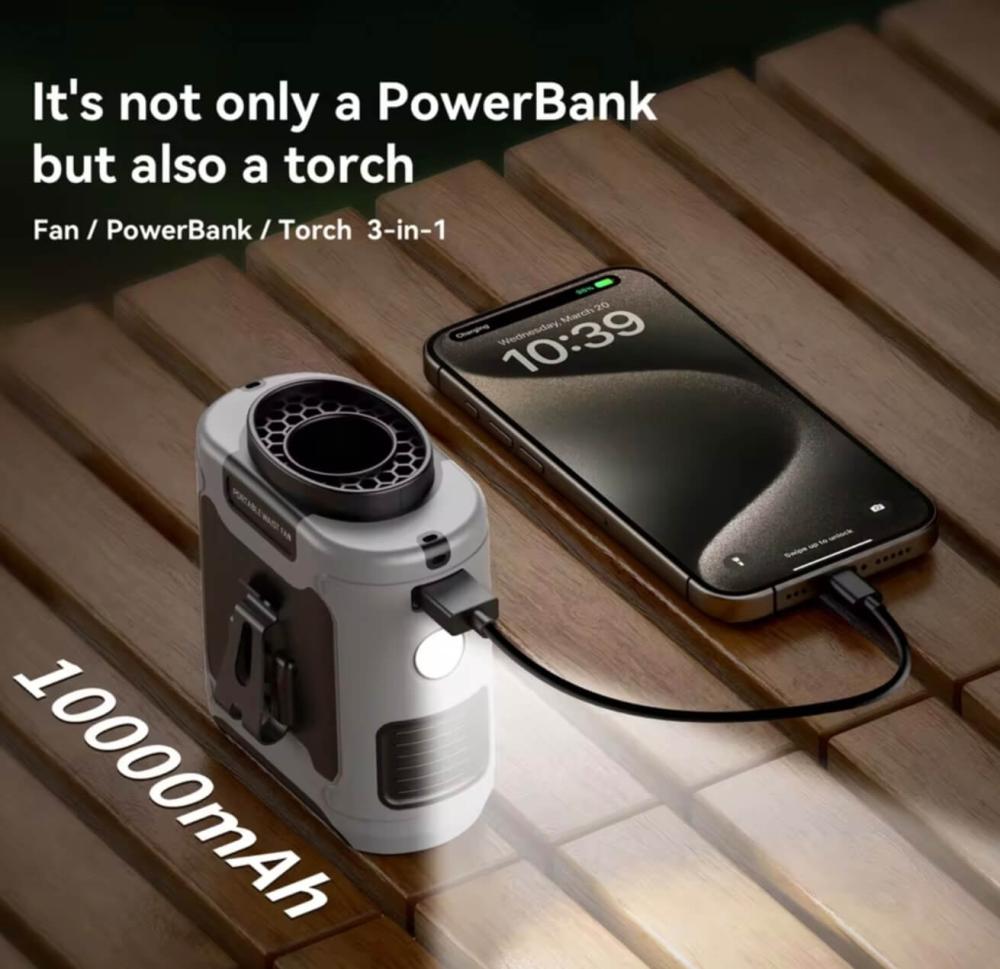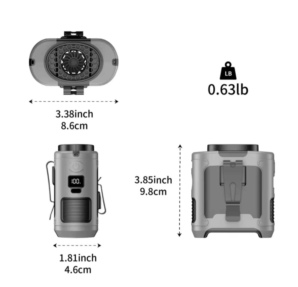 3 في 1 مروحة خصر محمولة، مع 3 درجات تبريد، تدوم ل24 ساعة مع الدرجة الأولى، شاشة رقمية لعرض نسبة البطارية، شحن type c، ويمكن استعماله كمصباح وباور بانك، لون أخضر
