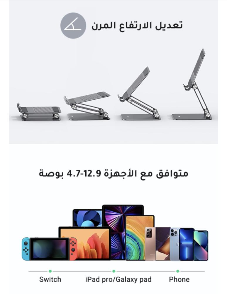 حامل معدن ايباد قابل للطي من يوجرين زاوية للتعديل تابلت للمكتب متوافق مع جميع الاجهزة اللوحية 4.7-12.9 انش برو اير ميني جالاكسي تاب