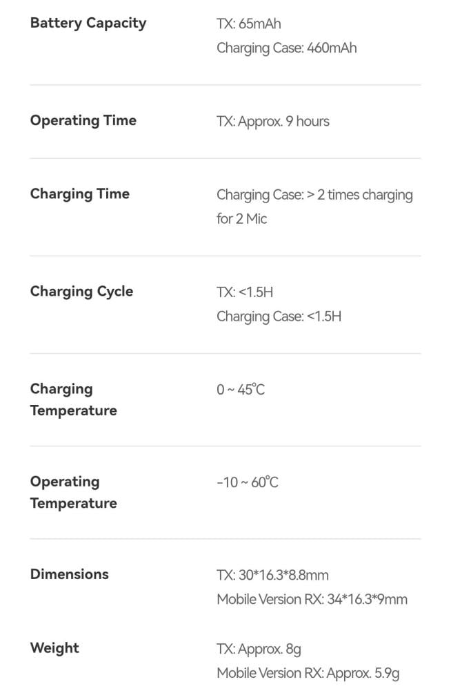 *اقتران فوري: سهل الاقتران جدا لا يحتاج إلى بلوتوث أو تطبيق فقط نقوم بإدخال وصلة الاستقبال في منفذ شحن الهاتف type c ثم ضغط مفتاح التشغيل في المايك وبعدها يتم الاقتران بكل سلاسة.
