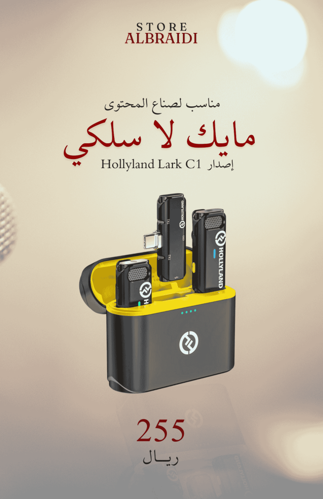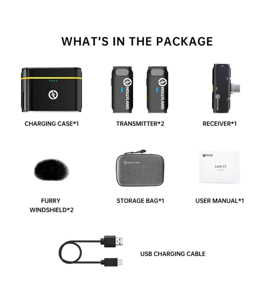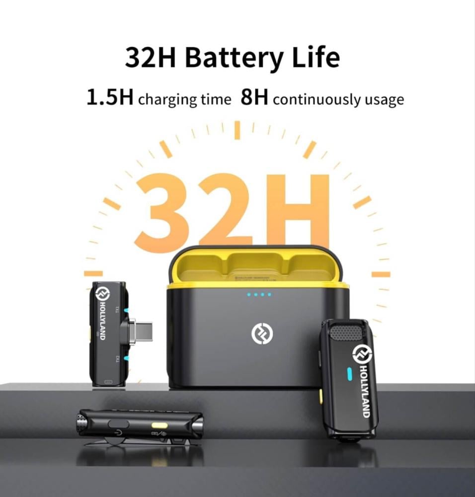 ميكروفون لافالير لاسلكي لارك C1 من Hollyland للهاتف type c سلس التوصيل والتشغيل بخاصية الغاء الضوضاء يعمل 32 ساعة مع شحن العلبة ويلتقط الصوت من بعد 200 متر
