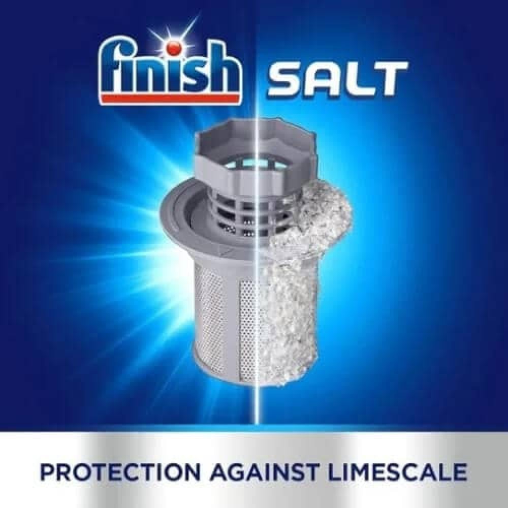 يعمل الملح على تنعيم الماء ويحمي غسالة الصحون من رواسب الجير، كما أنه يساعد على منع بقع الماء على الأطباق والأكواب