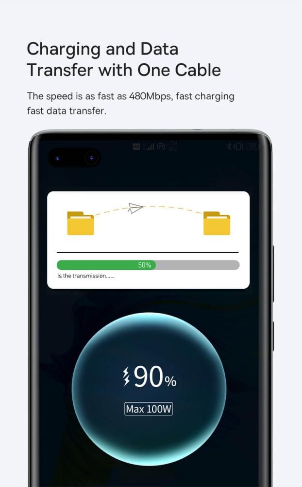 كيبل شحن سريع جدا 100 واط بمنفذ USB A إلى type c لشحن الهواتف الصينية الرائدة بأقصى سرعة هونر هواوي ون بلس ريلمي بوكو، طول 1 متر